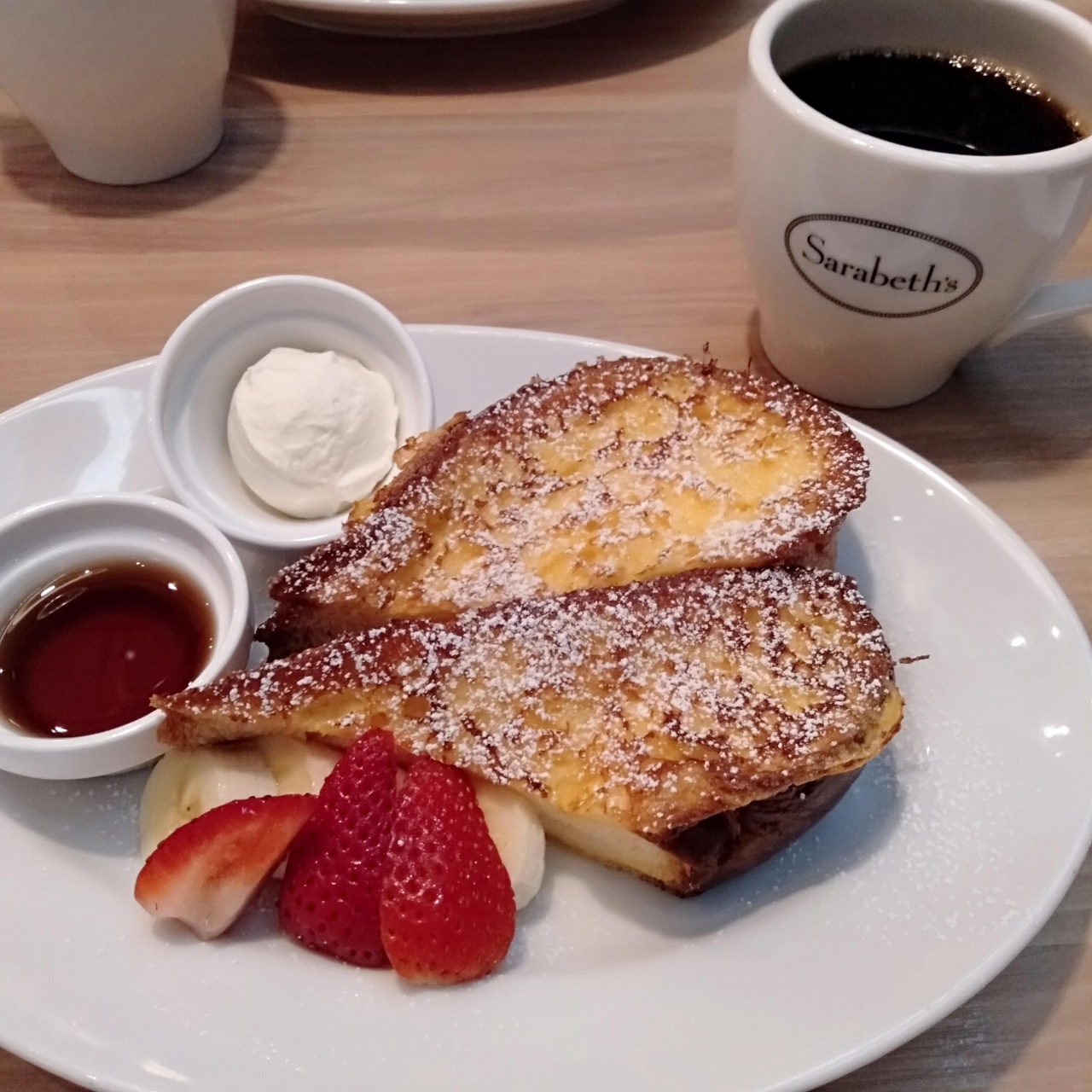 名古屋駅近くのゲートタワーの中にあります。店内は広くアメリカのダイナーのような雰囲気。席も仕切りがあるので安心です。パンケーキは、中がもちもち外側がカリッとしていておいしかったです。カフェオレも、おいしかったです。