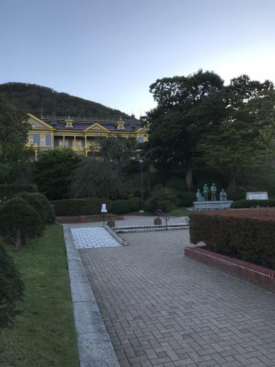 公園からは旧函館区公会堂のバックに函館山が見えて堂々とした風格でした