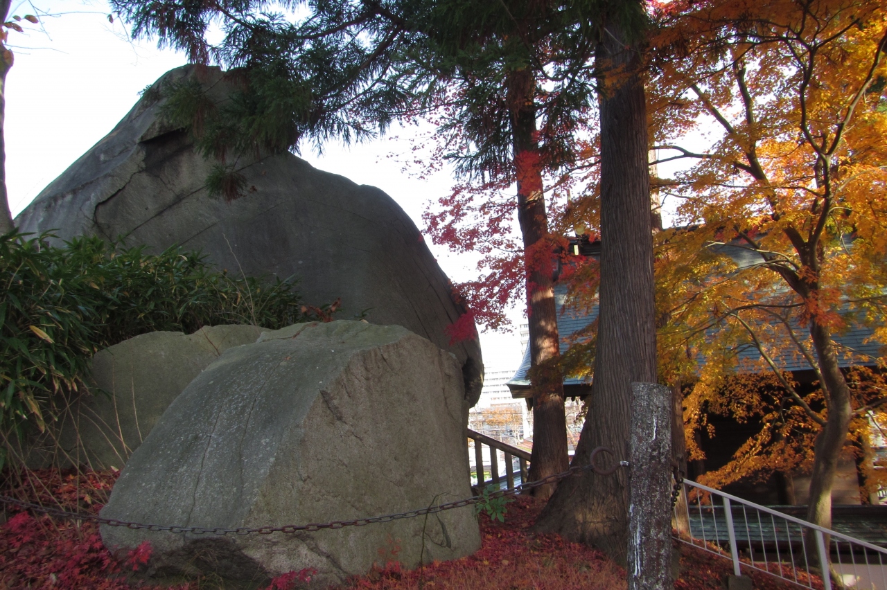 盛岡城跡公園にある桜山神社の建物の後ろにある烏帽子の形をした岩です