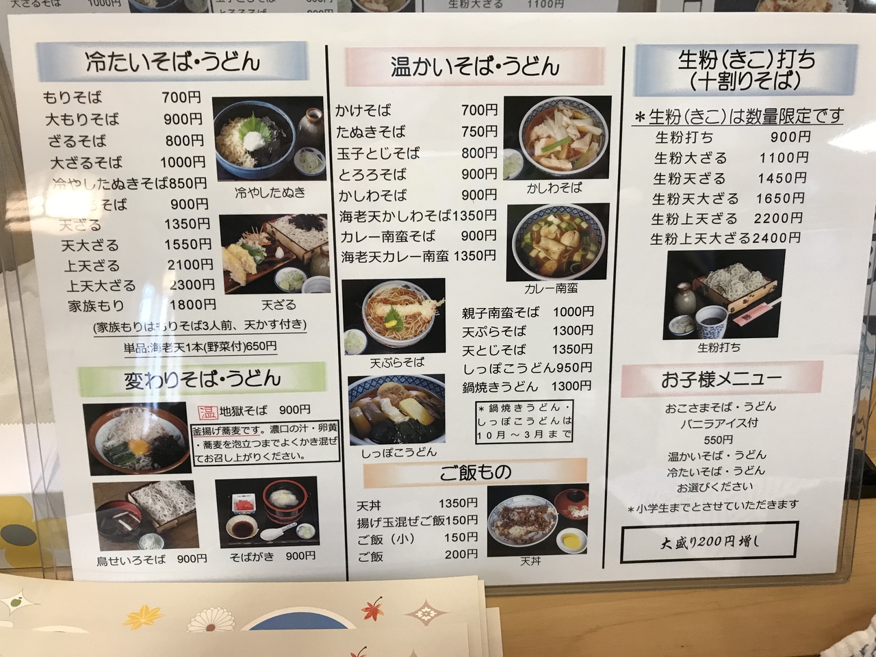 駐車場正面にあるそば処では20種類以上のおそばが570円でリーズナブルで食べられます