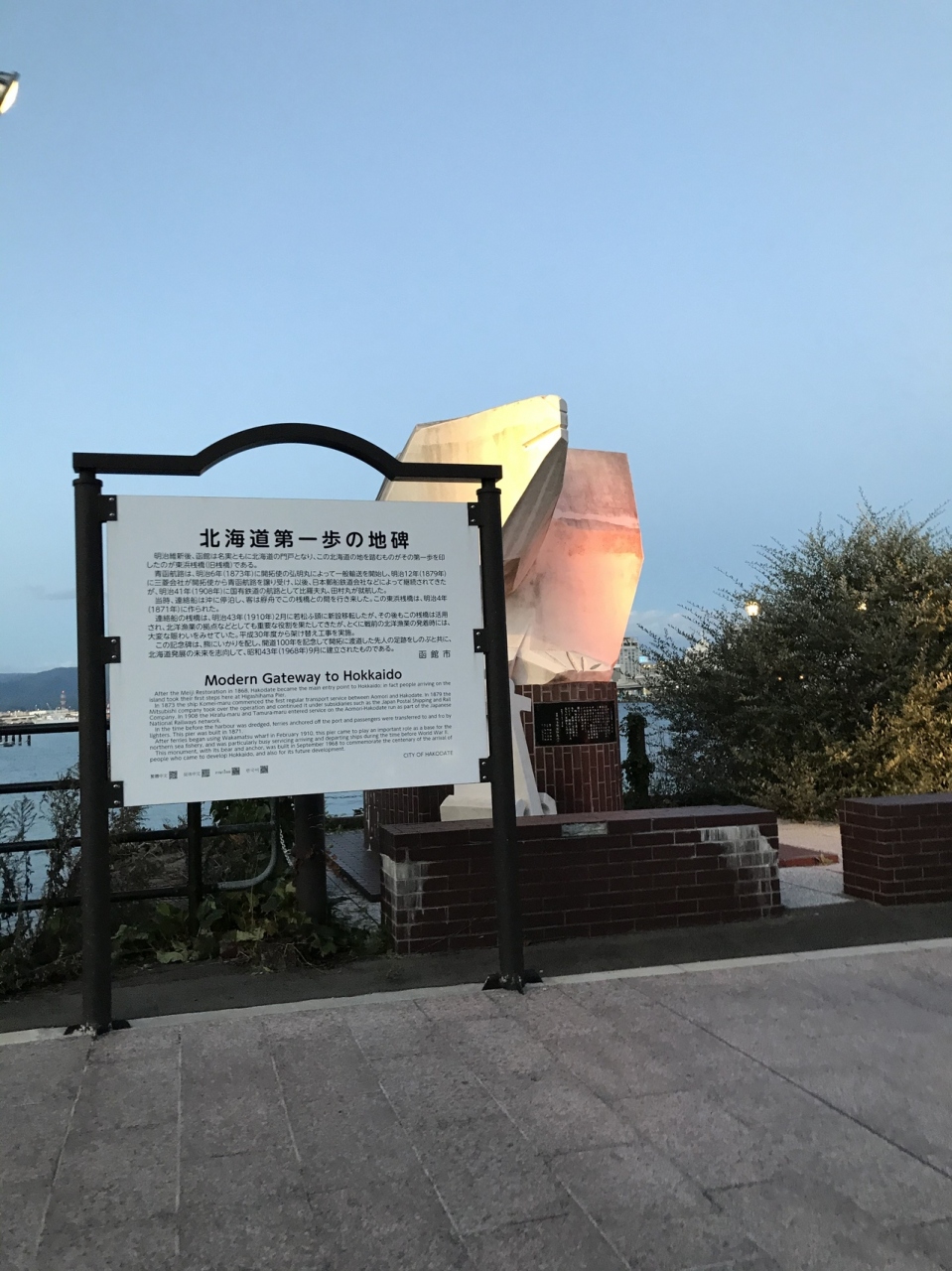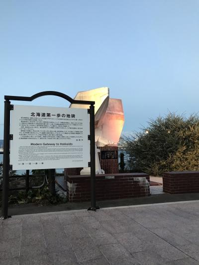 港のすぐそばに北海道第一歩の地碑があります