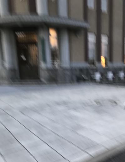 暗かったので若干ブレてしまいましたが円柱の柱が特徴の建物でした