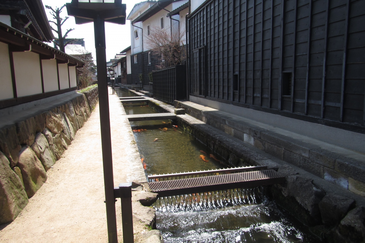 飛騨高山の瀬戸川と白壁の横にあるお寺です