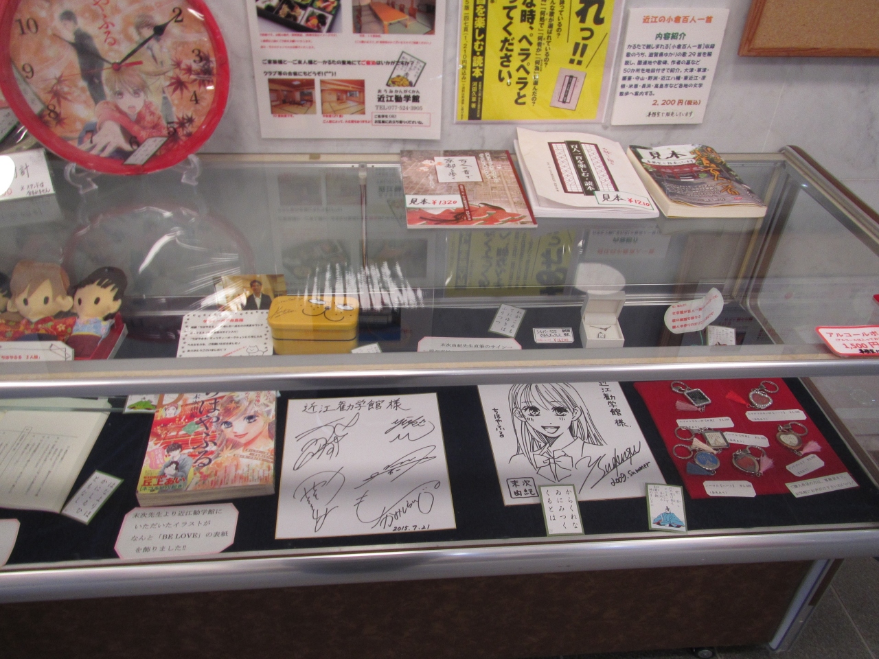 玄関に入ってすぐにちはやふるのサイン色紙やグッズが多数売っていて