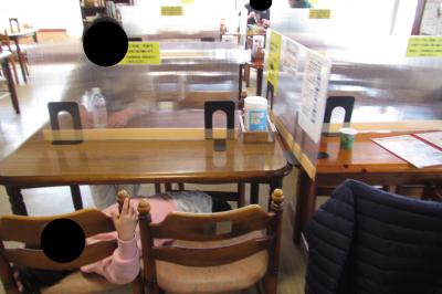 レストラン奥の2テーブルが岩洞湖を間近で眺められる席になっています