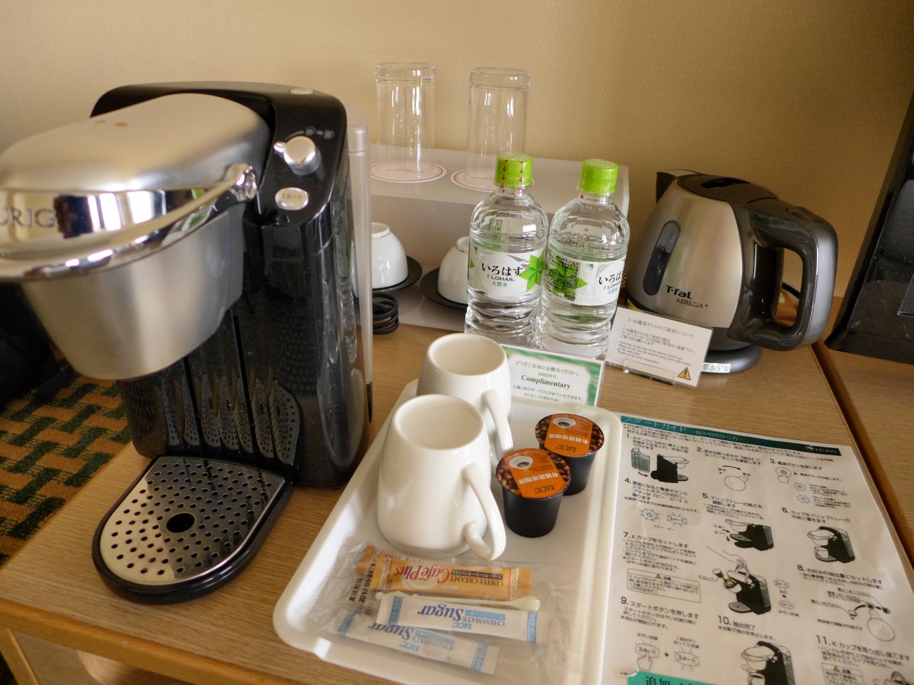 ラウンジにはコーヒーや緑茶のおもてなしがありました。