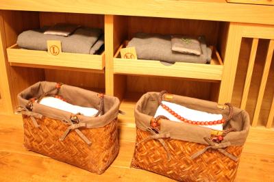 大浴場に行くとき用の籠にはタオルなど用意され、館内着の浴衣やサムイがありました。