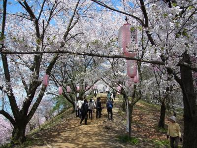 桜だけでなく1度のいろいろな花、梅に桜に木蓮、桃、レンギョウ、ボケなど春の花が次から次と咲き乱れ、花の山を作り出しています。
