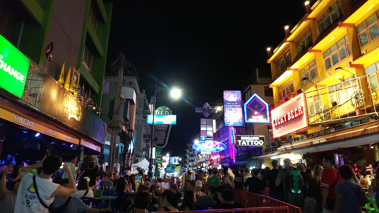 カオサン通りにあるクラブ「The Club」あたりから、このお店と向かいのお店が最も賑やかになり、深夜はラッシュアワーのごとく人で溢れ、身動きが取れないほどの大混雑になります。