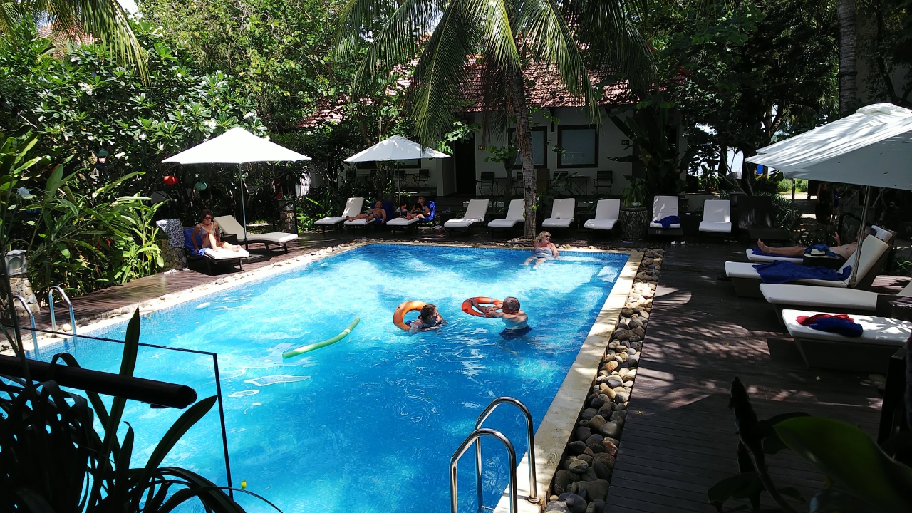 ホイアン旅行の際に、ヴィンフンホテルグループの中のひとつ、ヴィンフンヘリテージホテルに泊まっていたのですが、こちらのリバーサイドホテルの施設も、無料で利用が可能なので、ぷらっと行ってきました。