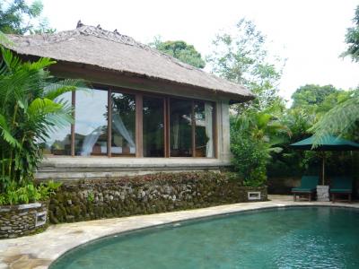プライベートプールから見た私のヴィラ。ホテル内で写真を撮りまくった後は...