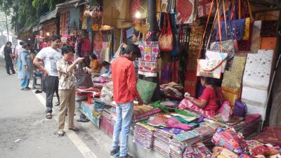 昼食の帰りにブラット立ち寄ってみました。いろいろなお店が軒を並べており、特に女性にとっては垂涎の的。サリーやバッグなどの製品が所狭しと並べられていました。また路上の非正規っぽいお店をそぞろ歩くのもこれまた一興。