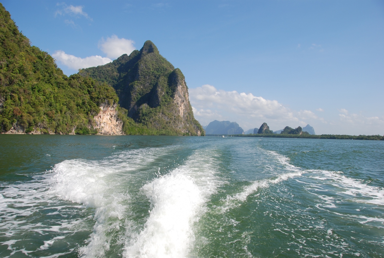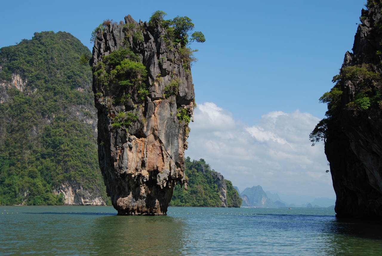 シンガポールからのクルージング2日目はプーケットに寄港。パトンビーチの沖合に客船は停泊し、テンダーボートを使ってビーチまで行く。バスはパンガー湾沿いの道を快適に走り、鄙びた船着き場に到着。そこからの青い海と緑多き島々は美しいの一言。ボートで海上の村落を通過し海上の洞窟をくぐった後、かの有名なジェームスボンド・アイランドともいわれる、ピンガン島へ。海上に出た岩があたかも倒立しているようなバランスを保っているのが印象的。約20年前に来た時と変わらぬ姿に感動しました。