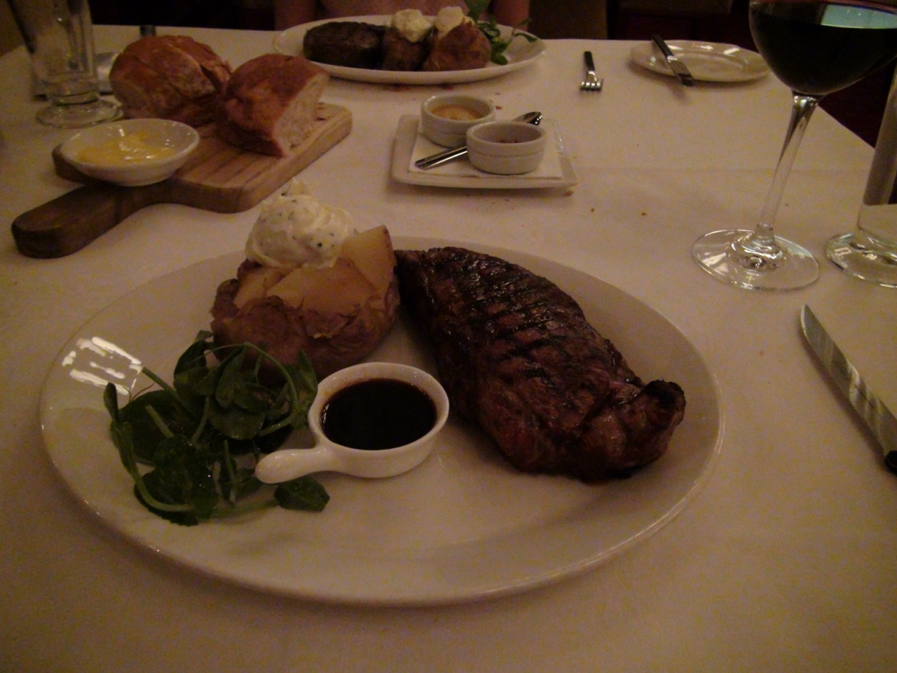 オフィス街のど真ん中にある落ち着いた雰囲気のレストランでした。木目調の店内は古き良き時代を偲ばせます。メニューはビーフステーキが中心。サーロインステーキを400グラム、カラマリのフライを仲間とシェア―し、グラス赤ワイン1杯と食後のコーヒーでA$70程度でした。