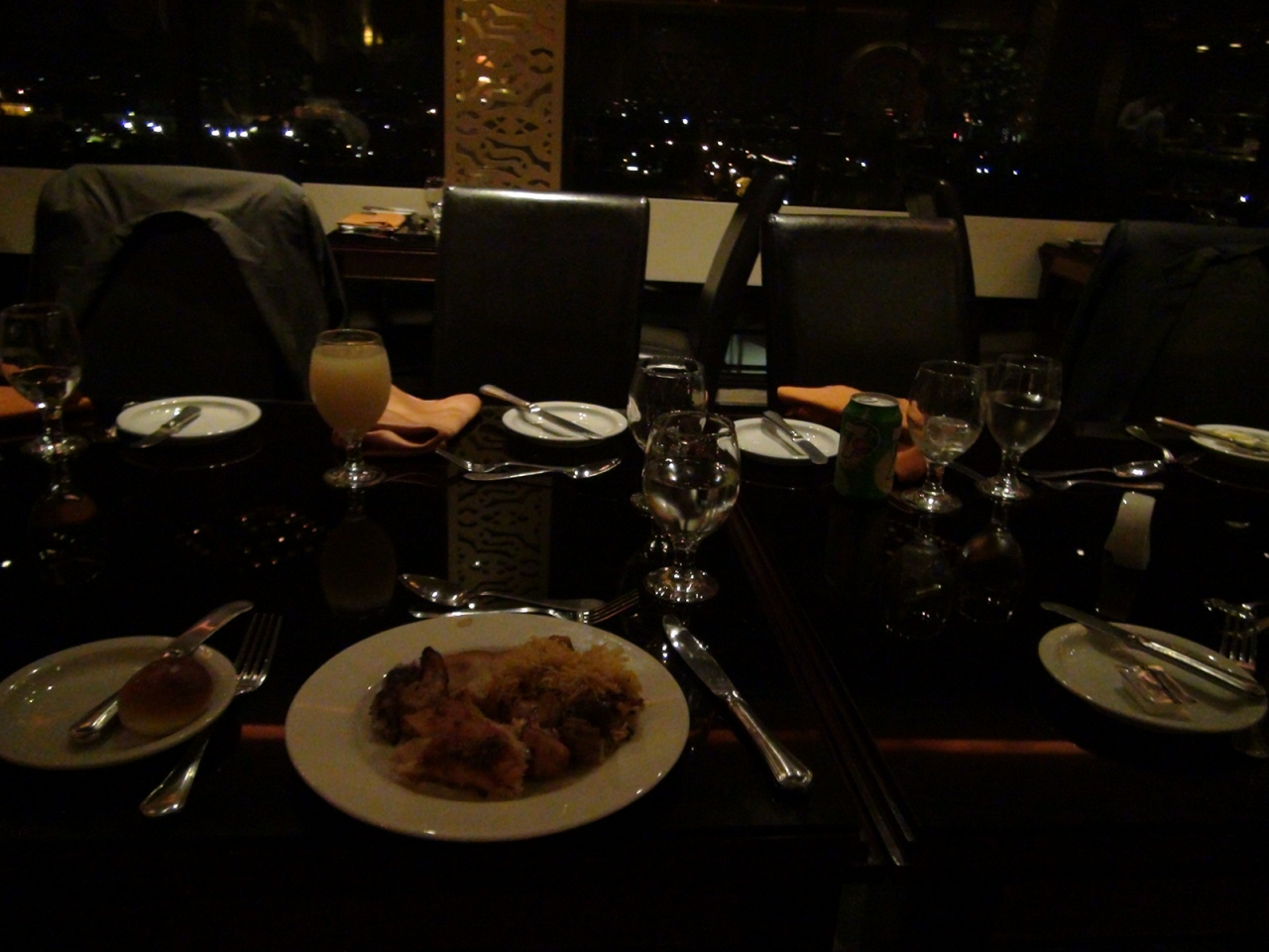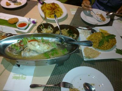 まずはサンミゲルのペールビールで乾杯、フィリピンで結構よく見かけるのがこの飲料のタワー。3リットルのタワーが600ペソ(1,200円)とは驚き。タイ料理の方は同行したタイ人に言わせると本物とは違うとのことでしたが、別途刻みトウガラシを頼んで入れたらば、スパイシーになって御満足いただいた模様。やはりフィリピン人の甘いもの好きにアレンジしてあるのは否めませんでした。
