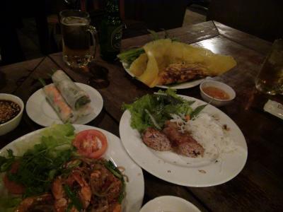 3人で30万ドンかかりませんでしたが、生の皮の春巻きと揚げた皮の春巻きの食べ比べなど、ベトナム料理をエンジョイしまくりました。ここも観光客が比較的多いのですが、値段の安さは際立っています。おススメはベトナム風のお好み焼きです。卵焼きに包まれていて何とも言えぬアジアの美味しさよ!
