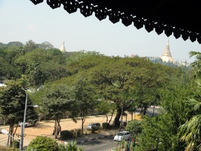 部屋は湖を臨む方角とパゴダを垣間見る方角があります。前者は湖畔散歩する人のこえ、後者は車の音がちょっと騒がしいのが難点ですね。