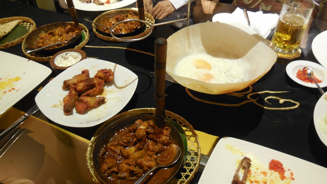 スリランカのカレーを食すなら間違いなくこちらではないでしょうか。当地ではカシューナッツが有名らしいのですが、カレー味を付けて茹でたものが斬新でした。柔らくてイケる味です。前菜をいくつか頼み、メインにはチキンカレー(かなり辛いです)と見た目も新たなTwo Eggs Hopper。これはインドでも見たことのない、とても面白い形をした「ナンの一種」とでも言いましょうか。