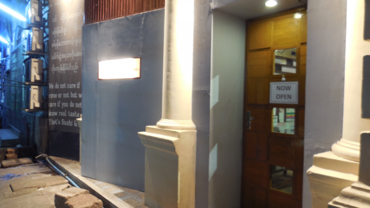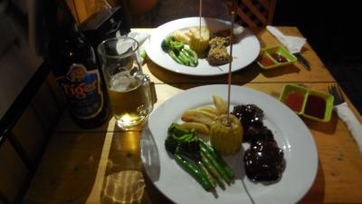 こちらもパークロイヤルホテルの裏側に交差点角に位置しています。夜になると余りきれいとは言えない街並みが見えなくなるのでなかなかいい雰囲気ではあります。建物の中に入るとアメリカを意識したインテリアに溢れ別世界のようでした。ここで店の名前の付いたビーフステーキを食べましたが、ソースはA1付け合わせはポテトといかにもアメリカンでした。ミャンマーは牛肉がいまいちなので仕方のない面はありますが、このプライスでは贅沢言ってられません。雰囲気はGOOD!でした。