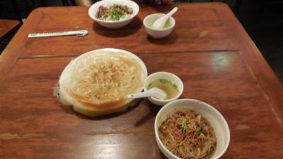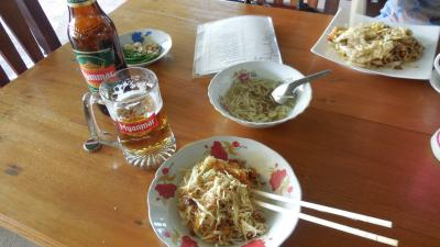 昼間と夜に行きましたが、昼は周りの雰囲気の汚さが目立ってしまうので夜がお勧めです。2月ですと夕方になると涼しくなり、エアコンなしでも料理を楽しむことができます。シャン・ヌードルにもいろいろとバラエティーがあり、鶏肉の焼き麺を頼みました。あとは焼き餃子ですね。周りの焦げ目がフリルになっているところ、カリカリとしてとても美味しかったです。シャン料理はかなり中華料理の影響を受けていますね。