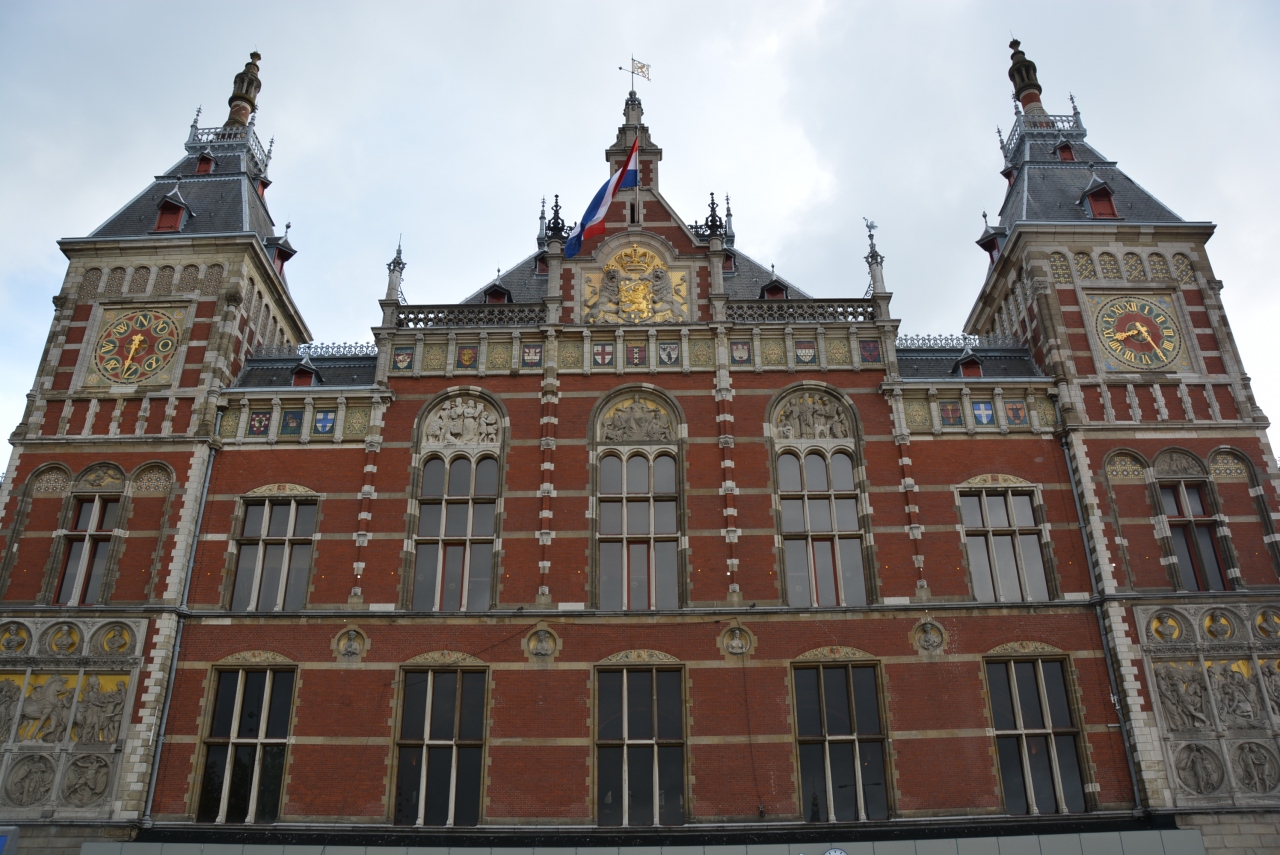 早朝にアムステルダムのスキポール空港に着き、パリに行くまでのトランジットの時間を利用して市内観光。まずは電車で空港からアムステルダム中央駅までやってきました。