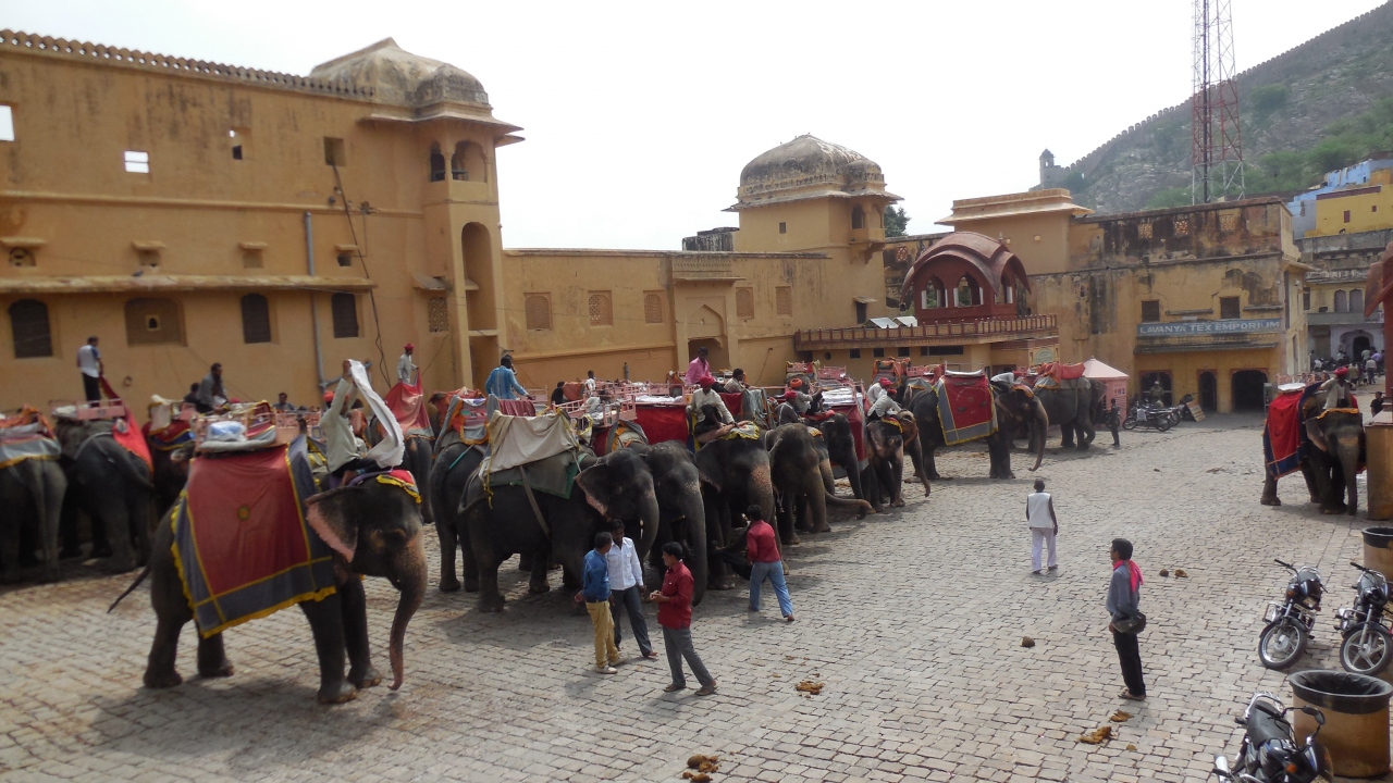なぜここが世界遺産ではないのだろうという気持ちになりました。素晴らしい風景とお城でした。定番となっている象の背中に乗って城へと登っていきます。ピンクシティの入り口に位置する最初のピンクでしょうか、万里の長城のように山の稜線にそってピンク色した砂岩の城壁がうねうねと連なっている光景が素晴らしかったです。