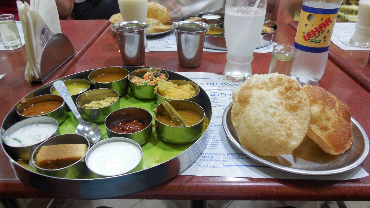 インド各地に支店のある南インド料理のレストランです。一番の人気は165ルピーのターリでした。少し早目の時間に行ったのですが、レストランを出るころには長蛇の列。