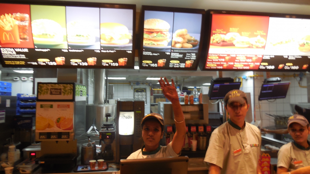 マクドナルドと言えばハンバーガーですが、ここ牛が神さまのお使いであるところのインドではどうなっているのか興味シンシンでした。