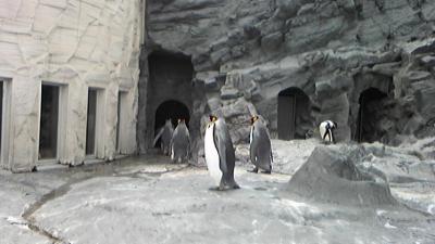 もぐもぐタイムの時間になって、ペンギンがみんな背を向けて帰っていくとこ...