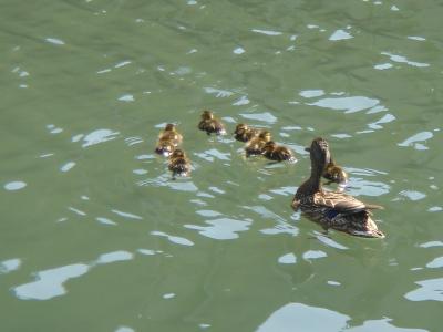 小樽運河にいたかるがもファミリー☆小さいのが本当に可愛くて、ずっと見て...