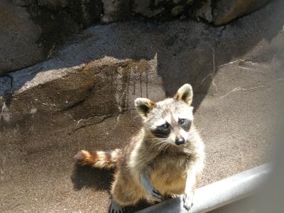 昭和新山熊牧場のアライグマ。エサを上から見せるとおねだりするんです。こ...