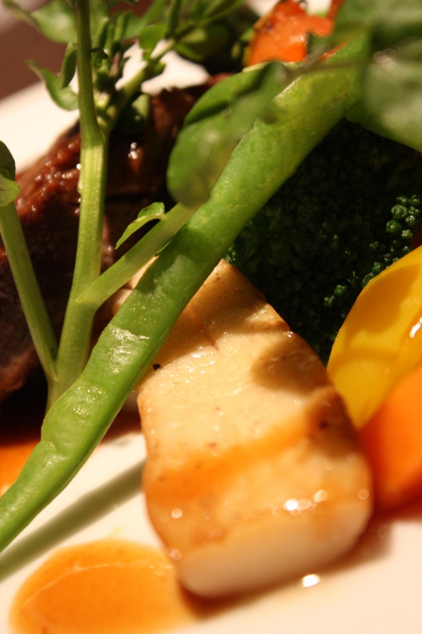 料理は見た目、味の両方で楽しませてくれ、特に野菜が美味しいです。