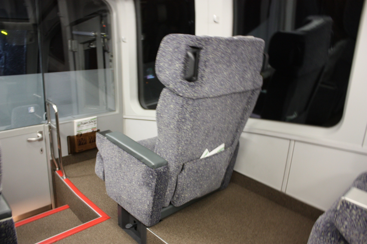 グリーン車両の1両目で、座席は2−ABになったのですが、この席がアタリでいわゆるパノラマ席となっており、ビューが素晴らしいです。