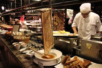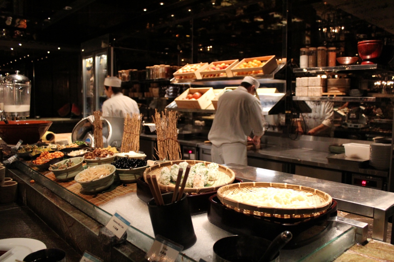 久々早めの仕事終わりだったので、奥さんと一緒に浜松町のベイサイドエリア(竹橋)のインターコンチネンタル東京ベイの3F「シェフズ・ライブ・キッチン」へ行ってきました。約50種類のフレッシュ(新鮮)・ヘルシー(健康)・ビューティ(美しさ)をコンセプトにした「できたて」「楽しい」「おいしい」をテーマにしたディナービュッフェを利用♪店内はお店の名前通りキッチンが丸見え(これがライブなのでしょうw♪)で、匂いや調理風景が見えるので食欲が増してきます(●´ω`●)