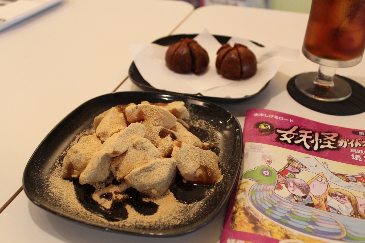 水木しげる記念館の目の前にあるカフェです。カフェも美味しいのですが、黒糖好きの私がハマったのがかりんとう饅頭です♪結構表面の皮(黒糖味)が香ばしくそんなに甘くなく♂でもパクパク食べれました♪女性にも好まれるわらび餅も量がたっぷりでプリプリの食感で美味しかったです。
