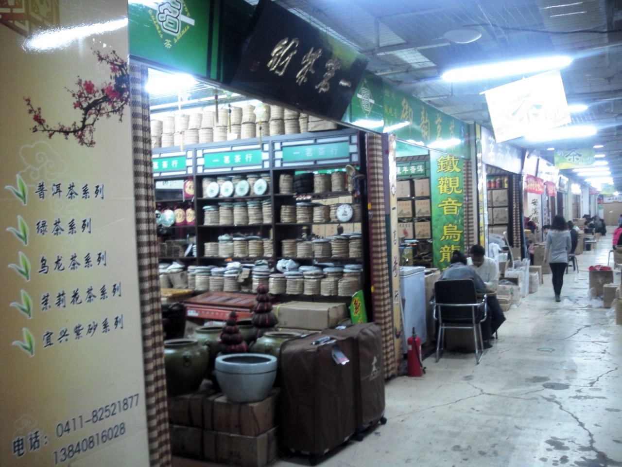 毎度大連訪問時のお土産で一番喜ばれるお茶を目的に訪問。あやしい雰囲気の建物の階段をおりるとそこはお茶の宝庫♪薄暗くて少々不安な感じで色んなお店を調査♪問屋風な感じでした。そこは、茶器専門店、お茶葉専門店、怪しいほこり塗れの円盤形状の古茶店などがあります。パッケージ専門店で好みの高級銘柄袋も購入可能!試飲や量り売り可能で、気に入ったお茶を少しずつ入れもらうことも可能です。大連駅周辺の日本語が通じる路面店の半分以下の値段でお茶が買えます。古茶等は高いもので100g=何十万円なんてもの!