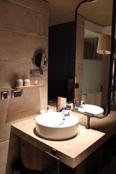台北駅近くのホテルで動きやすそうだと思い宿泊しました。ホテルはとても綺麗で、お部屋もデザインに凝っていて大変気に入ってます。ですが、トイレの一部やバスルームの仕切りがなく、レイアウト的に泊まりにくいかなと思いました。変な話、男女での宿泊の場合はバスタブがお部屋と一体(仕切りはカーテンのみ)で脱衣場もないですから裸なっても大丈夫な関係とWCも一部がカーテンなので何かしらの音が効かれても問題ない関係でないと宿泊は避けた方がよいのかな(;^ω^Aと思います!あくまでも自己判断ですが・・・