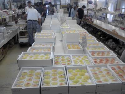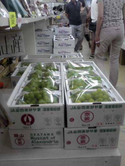 新鮮な果物が沢山の青空市 ♪^^ やっぱ岡山行ったら桃と葡萄♪