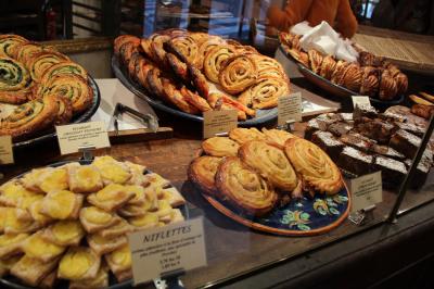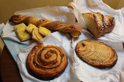 パリで美味しいパン屋さんでパンを食べたい♪そんな話をみんなでしながら色んな旅行雑誌を観ていたら、滞在先(クラウン・プラザ・パリ・レピュブリックホテル)から徒歩約5分~6分の場所に人気のパン屋さんがあるとの情報で行ってみました。お店はこじんまりと可愛らしい路面店で、ドアを開けるとパンのいい香りで溢れていました。焼きたてのパンが大きなお皿に沢山並べられどれもこれも美味しそうでした。朝ご飯なのでそんなに量は食べられませんが、あまりにも美味しそうで沢山注文してしまいました♪お店のおねーさんもすごく明るく感じが良く雰囲気も良かったです。味は、朝ということもあり、焼きたてでサクサク♪ふわふわ♪甘さも諄くないちょうど良い甘さで幾らでも食べられるパンでした。時間が有れば何度でも訪れたいお店でした。
