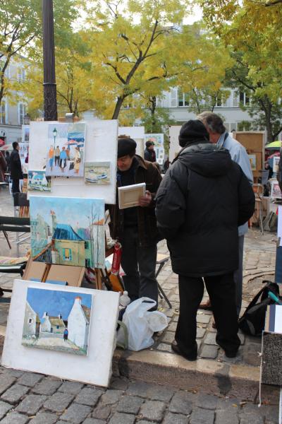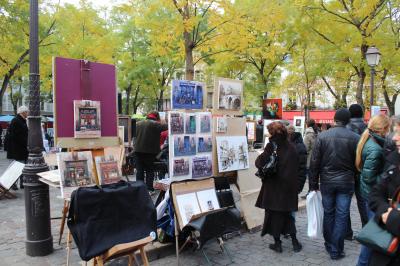 モンマルトル丘のサクレ・クール寺院訪問した際に寄ってみました。寺院から約3分ほどで広場へ到着。石畳の道路を進み到着した広場には、昔ながらのカフェやレストラン、土産物屋がずらりと並び、広場や路上で肖像画家や風景画家が絵を描きながら自分の作品を路上で売っていました。絵を眺めながら散歩している人や、数分で自画像を描いてもらうカップル等でにぎわってました。ゴッホもここで若かりし頃書いていたのかな?なんて思いながら散歩するのも良いかなと思います♪私の思うパリの街の風景という感じの場所でとても楽しかったです♪ 最後はカフェでコーヒー飲みながらその風景を楽しみました。(●´ω`●)