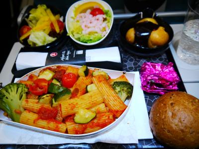 エコノミーでも機内食は結構美味しいです。