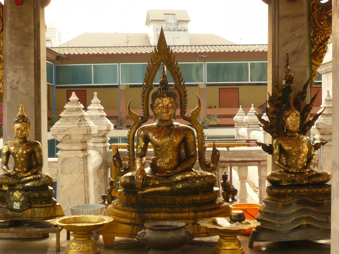 仏像に巻かれた山吹色の布が青い空に映えてとても綺麗でした。