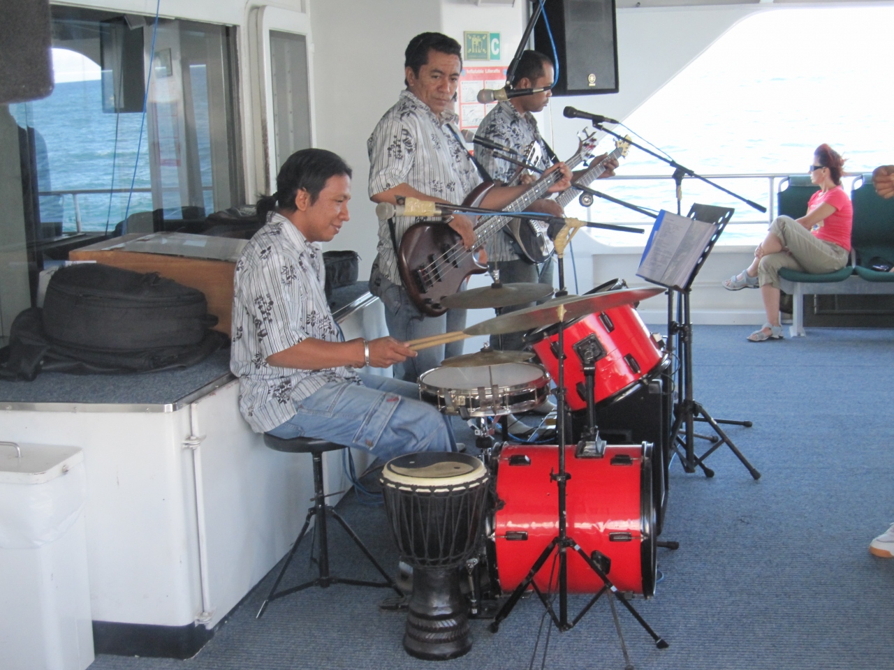 クルーズ中は軽食サービスあり、生演奏ありで退屈しません。