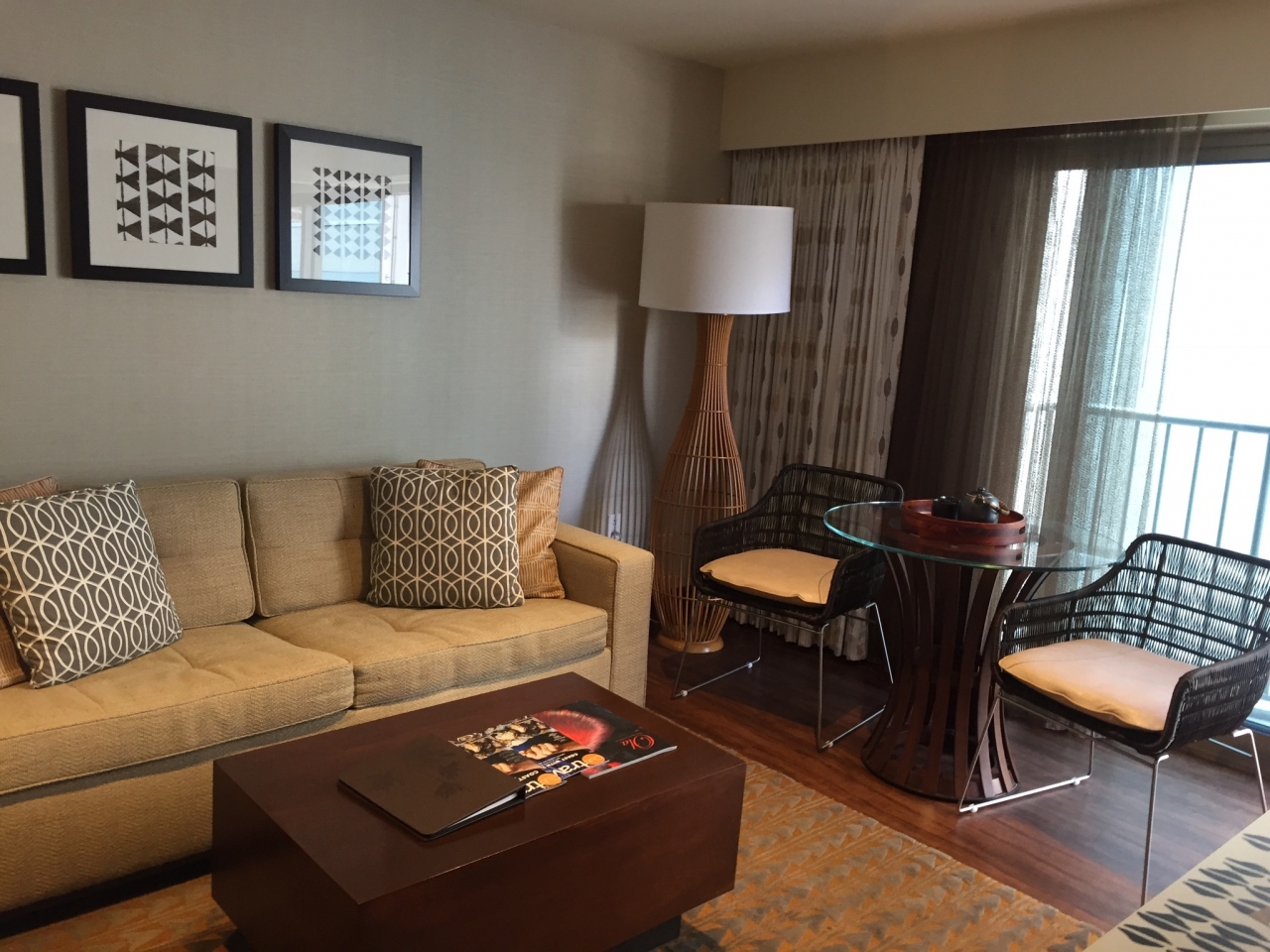 お部屋はハイアットでも広くありません。普通のビジネスホテルとほぼ変わらずといった感じでした。ただ新しいので設備等は綺麗でした。