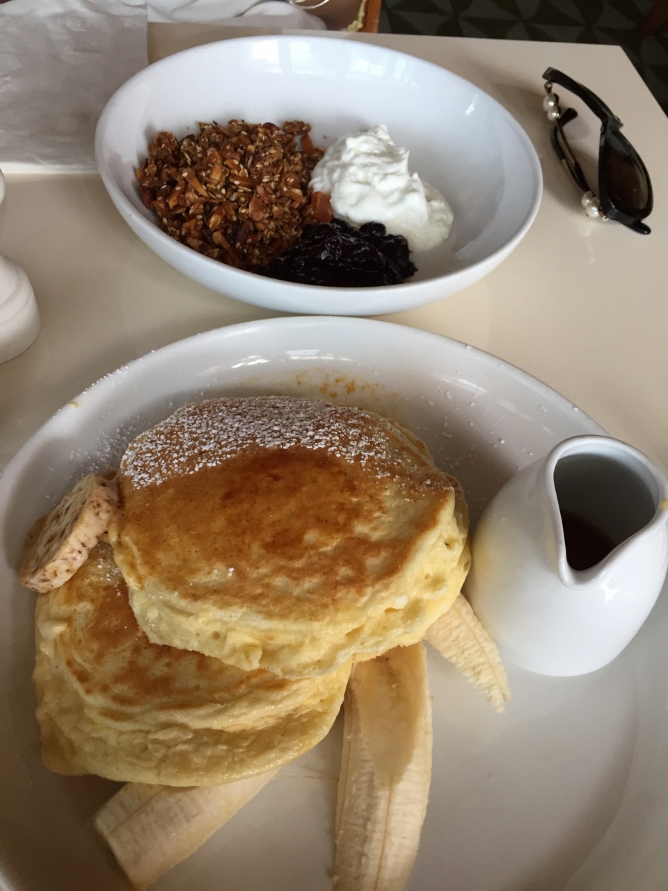 朝食の定番のリコッタパンケーキ($16)とヨーグルト&グラノーラ($10)をオーダー。