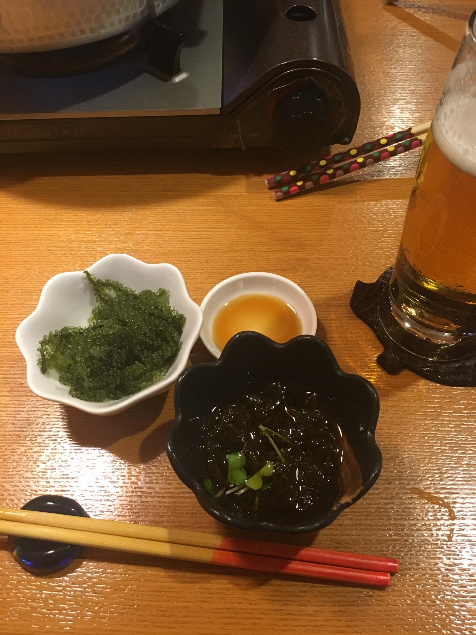 そして、一番評判が良かったのが、実はコースの最初に出てくるもずく!東京でこんなに美味しいもずくは食べたことがありませんでした!店員さんに聞いたところによると、機械を使わず、手で採取するようで、撮れる場所も秘密なんだとか。私たちはもずくを追加でオーダーしちゃいました!