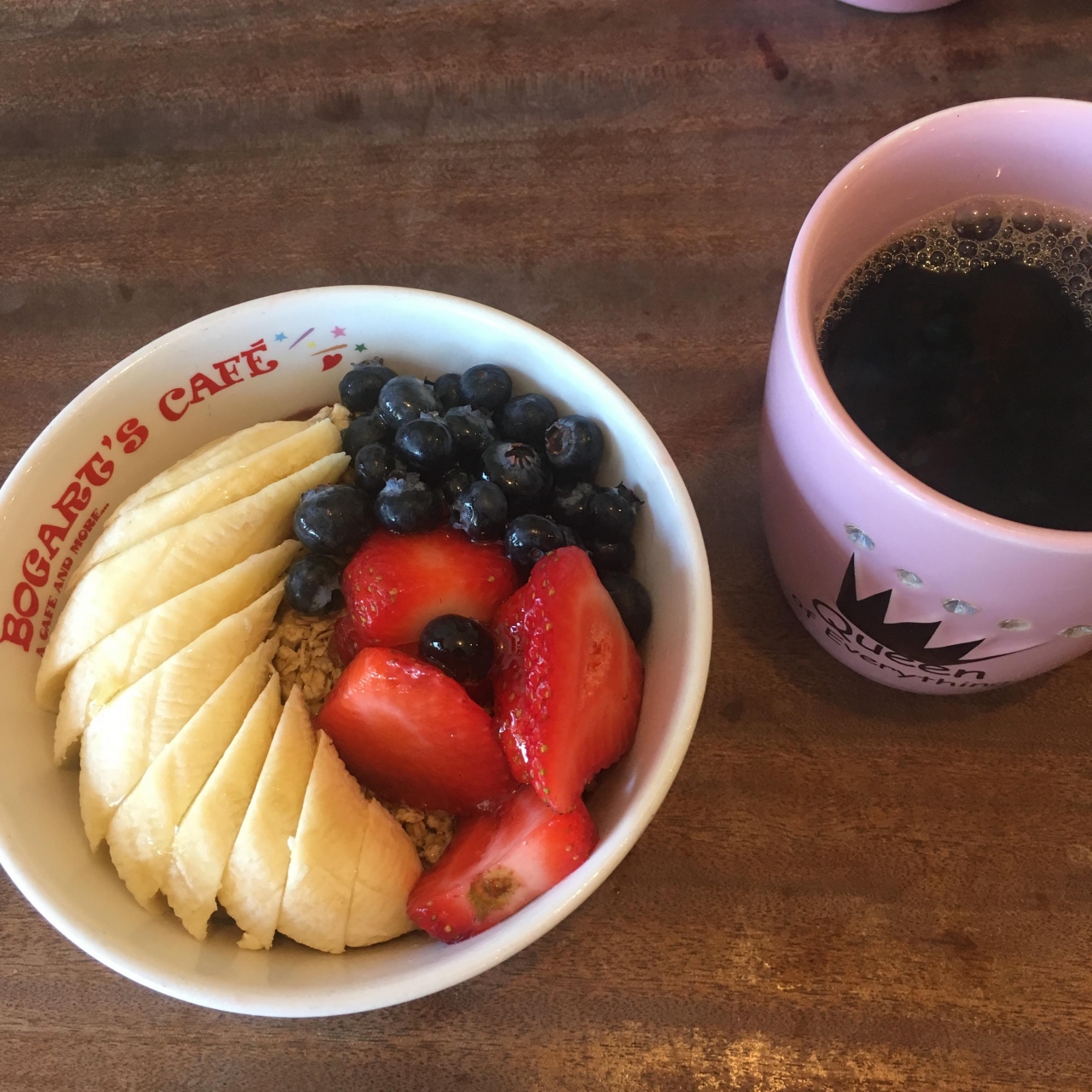 ボガーツカフェの看板メニューといえば「アサイーボウル」。特製グラノーラと一緒に大胆にかき混ぜて食べると、とっても美味しいです。