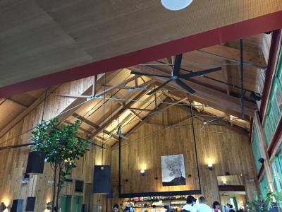 食事する場所は2階にあります。上がると高い天井に開放感のある店内でハワイっぽい!