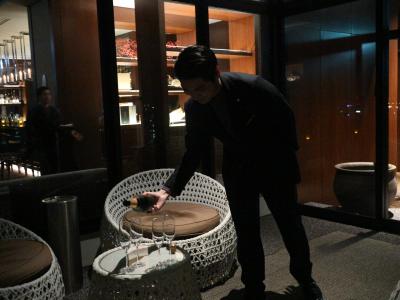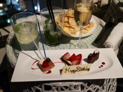 私のお誕生日だっため、サプライズでデザートプレートとシャンパンでこちらのthe Barでお祝いしてもらいました。後から聞いたのですが、本来であれば、デザートプレートはやっていないそうなのですが、引き受けてくださったようです。さすが、ハイアットのバーですね!