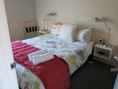 バス停から3ブロックでメインストリートに面していてショッピングに便利。皆で使うキッチンは広く清潔でダイニングテーブルからはワカティブ湖が見える。3階建てだがエレベータが無いのでチェックイン&アウト時に大きなバックの上げ下げが大変だった。